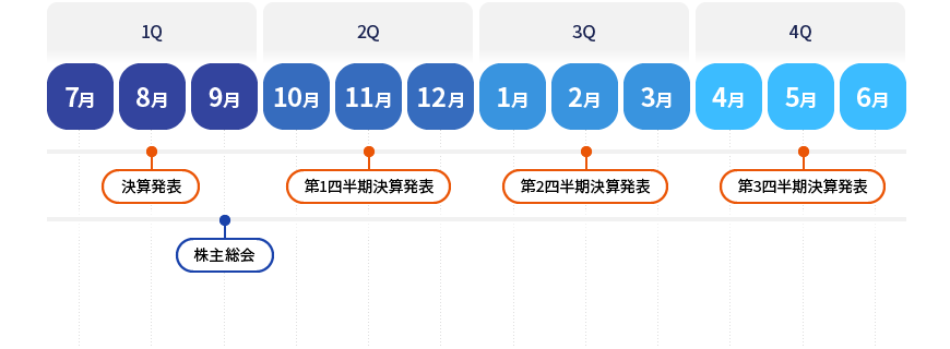 決算情報の漏洩防止と公平性確保のため、四半期ごとの決算発表日の1カ月前から決算発表日までをサイレント期間としています。この期間は、決算情報及び業績見通しに関するコメントや質問への回答を控えさせていただきます。ただし、この期間中に業績予想を大きく修正する見込みが発生した場合には、原則として適時開示規則に基づき開示することとします。なお、サイレント期間中であっても、すでに公表されている情報に関するご質問については対応いたします。