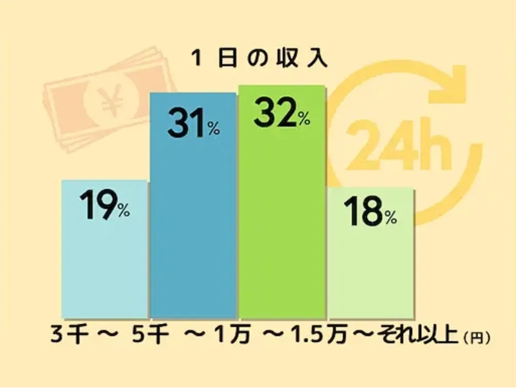 マイナビバイトのアンケートでは、単発バイトの1日の平均日給は1万円~1万5,000円という結果が出ています。