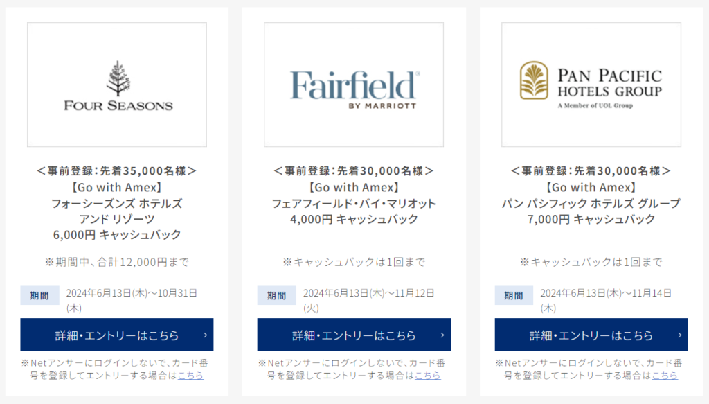 | IHGホテルズ&リゾーツ (先着30,000名) | 6,000円 | 2024年6月13日~10月31日 |