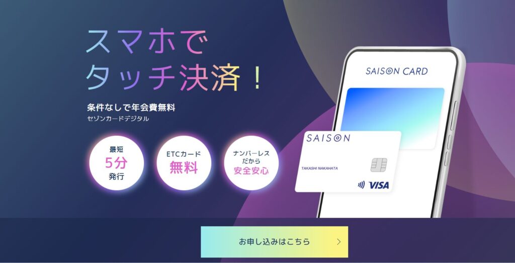 セゾンカードデジタルは、最短5分でデジタルカードを発行できるクレジットカードです。