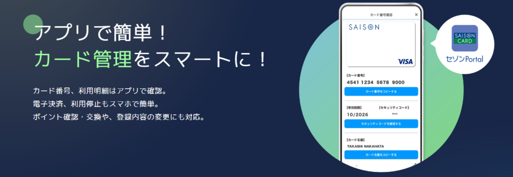 セゾンカードデジタルのカード番号は、専用アプリ「セゾンPortal」で確認できます。