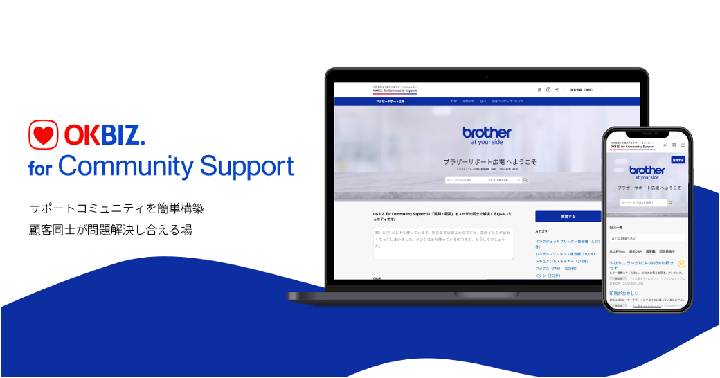互い助け合いをベースとした法人・個人向け製品サービスを展開する株式会社オウケイウェイヴ(所在地:東京都港区、代表取締役社長:福田 道夫、以下「当社」)は、サポートコミュニティ構築ツール『OKBIZ. for Community Support』(以下、『OKBIZ. CS』)のサイトデザインカスタマイズの初めての事例として、プリンターやミシンの国内マーケティングを担当するブラザー販売株式会社(所在地:名古屋市瑞穂区、代表取締役社長:三島 勉、以下「ブラザー販売」)の「ブラザーサポート広場」で実施いたしました。
