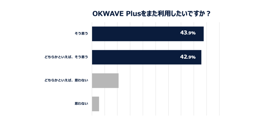 「世界中のありがとうの物語を蓄積し可視化する」をパーパスとし、法人・個人向け製品サービスを展開する株式会社オウケイウェイヴ(所在地:東京都渋谷区、代表取締役:杉浦 元、以下「オウケイウェイヴ」)は、企業や自治体のサポートセンターでは解決が難しい課題を、ユーザー同士の助け合いの力により、解決促進するサポートシェアリングソリューション『OKWAVE Plus』(オウケイウェイヴ プラス)を提供しております。当社は、OKWAVEPlus利用ユーザを対象とした利用実態調査を実施いたしました。