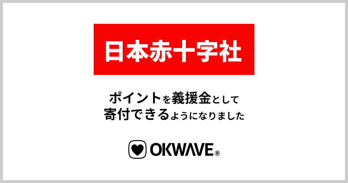 「世界中のありがとうの物語を蓄積し可視化する」をパーパスとし、法人・個人向けサービスを展開する株式会社オウケイウェイヴ(所在地:東京都渋谷区、代表取締役:杉浦 元、以下「オウケイウェイヴ」)は、運営するQ&Aコミュニティ『OKWAVE』において、ユーザーが獲得するポイントの交換先として、日本赤十字社への寄付を新たに追加しました。これにより、『OKWAVE』のユーザーは、「日本赤十字社」を通じて自身の活動で得たポイントを災害時の義援金として寄付することができるようになります。