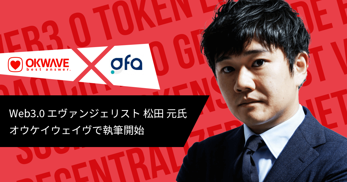 今回の連載では、GFA代表でありオウケイウェイヴのエヴァンジェリストでもある松田 元氏が、自ら筆を執って両社の視点をもとに、“Web3.0時代における新しいつながりのかたち”を発信していきます。