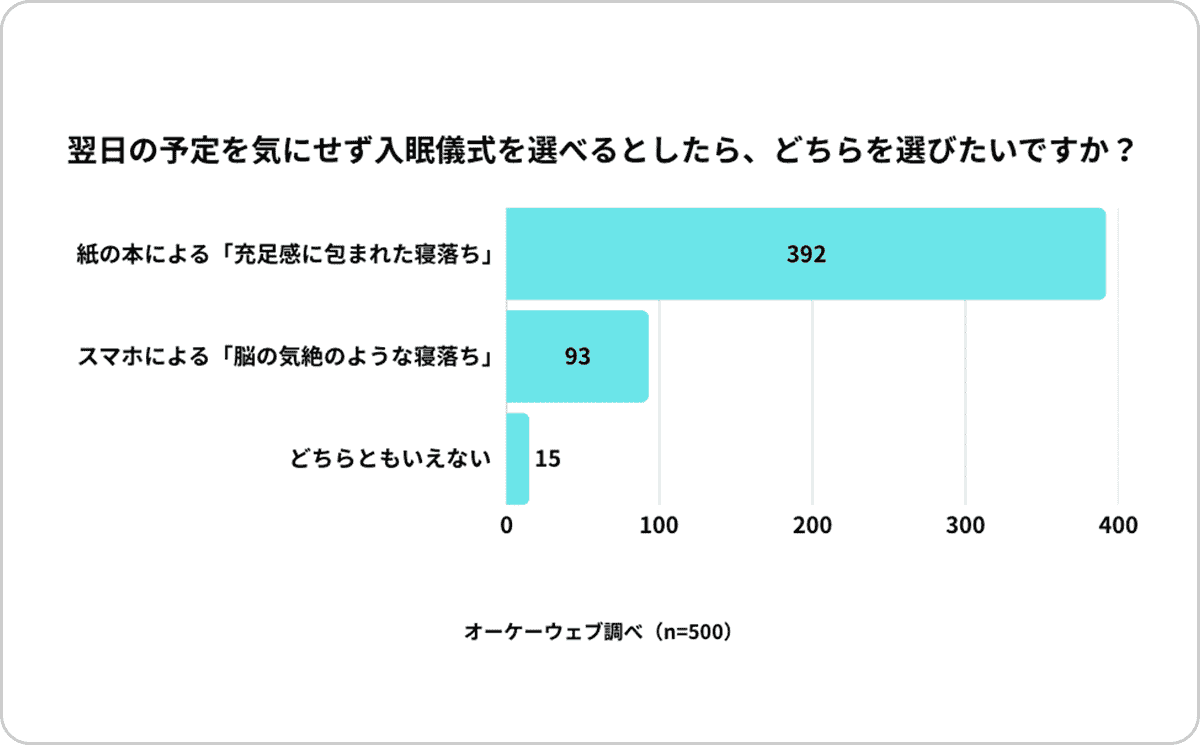 【理想】78.4%が、スマホによる「気絶のような寝落ち」よりも、本による「充足感ある寝落ち」を熱望。