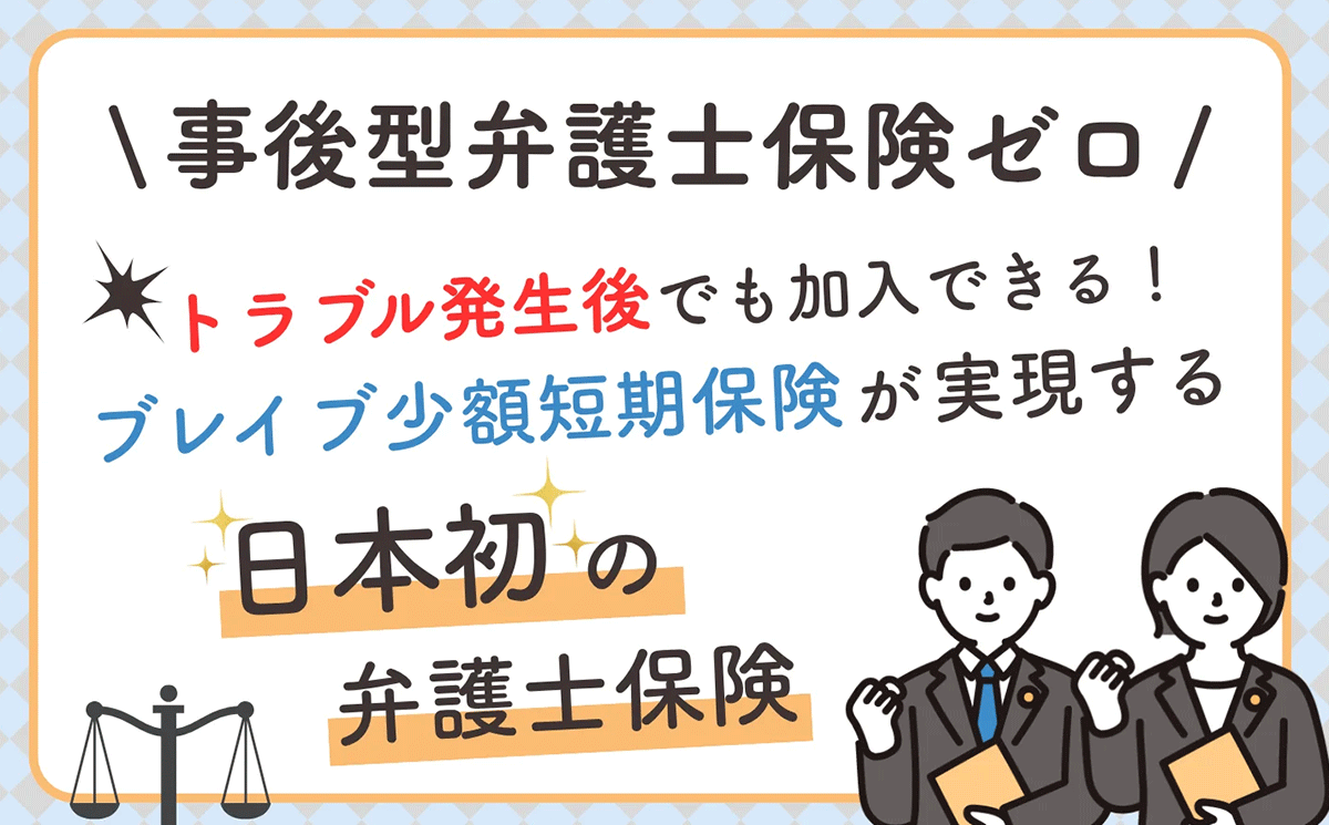 日本初!トラブル発生後に入れる「事後型弁護士保険ゼロ」