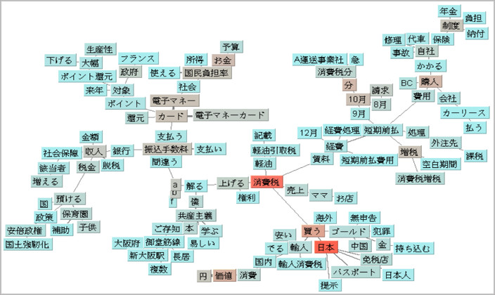 「消費税」に関連して「電子マネー」「還元」などのキーワードが頻出している。
