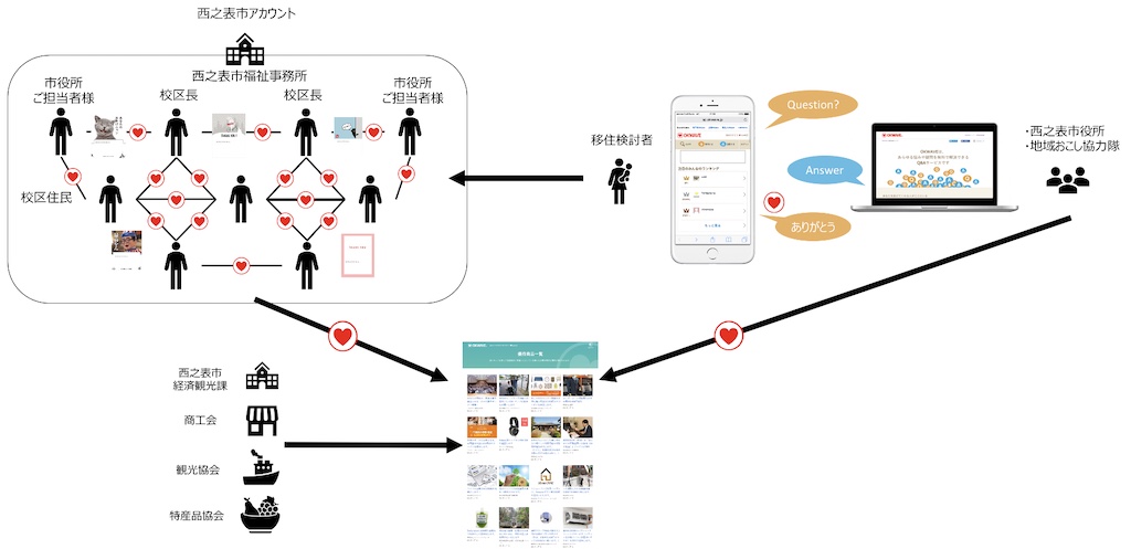 このたびの協定は、西之表市が掲げる「人口減少・年齢構造の不均衡・高齢化の進展」「地域力の減退」「担い手不足」の解決を目的とし、両者が協力してブロックチェーン技術等のICTを活用し、西之表市の住民間や来島者と住民間などに湧き起こる相互の助け合いなどによる「感謝」の気持ちをオンライン上で可視化し、価値付けを行っていくことで地域経済エコシステムを構築する取り組みです。