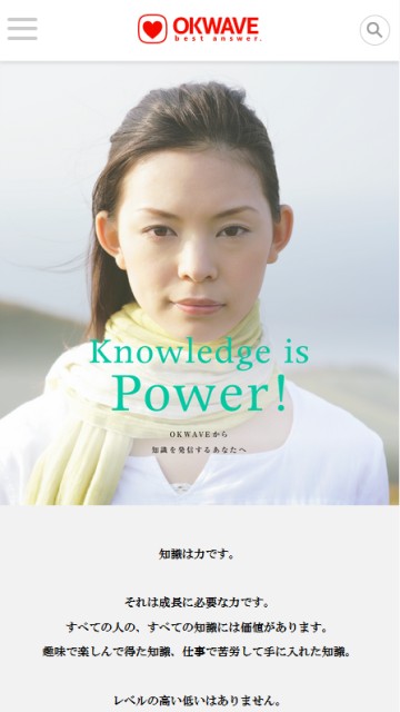 当社はすべての知識には価値があり、力がある、と考えています。『OKWAVE megrow』は“Knowledge is Power!”をコンセプトに、回答者の知識が守られ、他の人の成長の力となり、対価が支払われる場を目指します。質問者と回答者は当人同士のみの対話型コミュニケーションを通じて、質問者の問題解決をオンライン上で図ります。